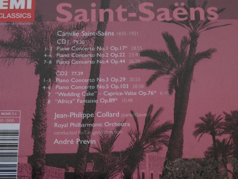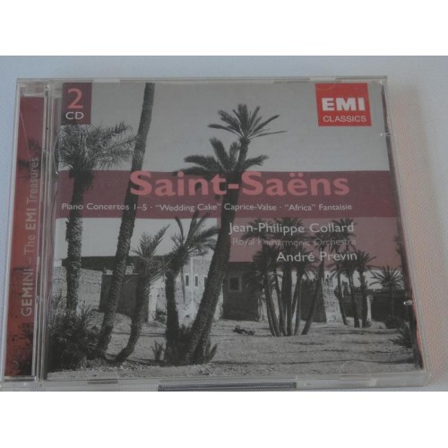 All 5 piano concerts of Saint Saens with Jean-Philippe Collard and the Royal Philharmonic Orchestra under André Previn. Double CD