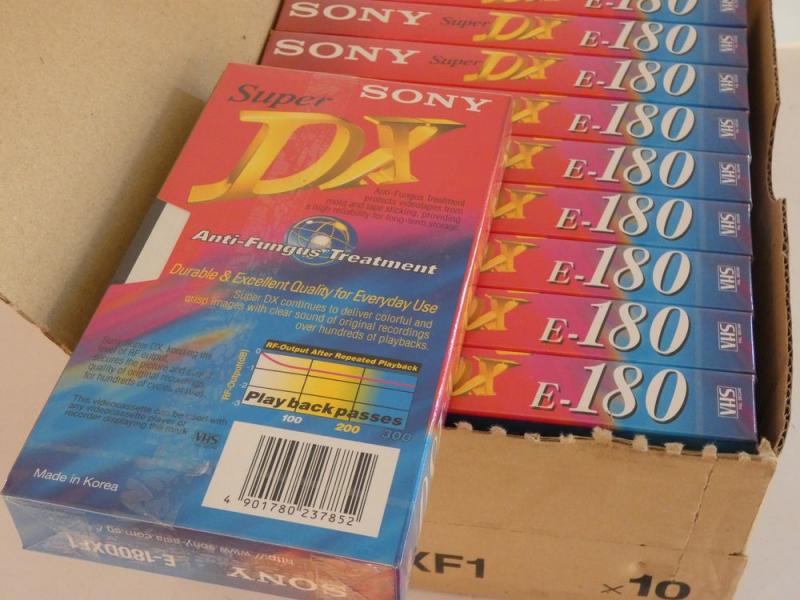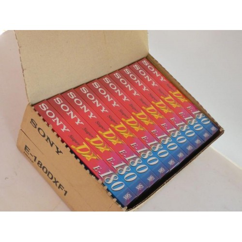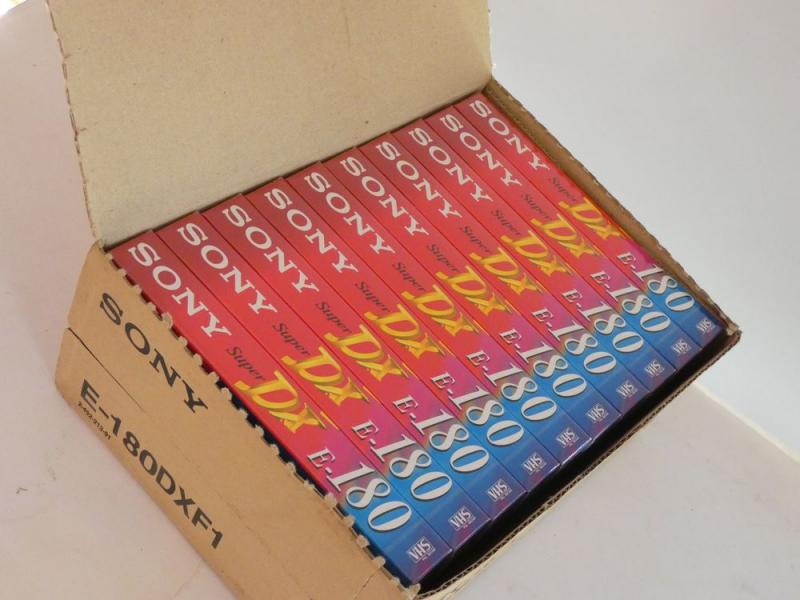 Box with 10 Sony VHS tapes. Still factory sealed.